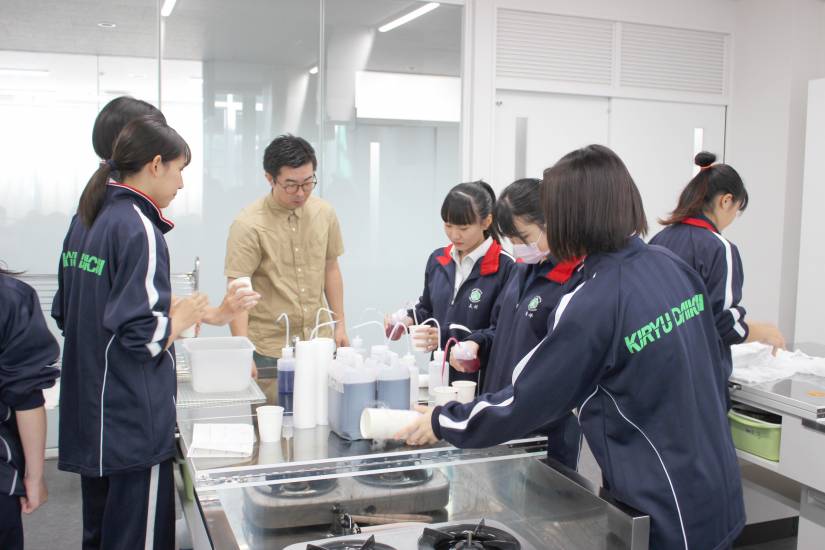 おしらせ 高校での染色実習授業講師 2019年09月10日 先週、地元の高校にてファッションコース科の3年生へ 染色実習の講師として出向きました。 専門職である弊社が学生さんたちに楽しみながら染色を体験してもらおうと 実習の講師をやっております。